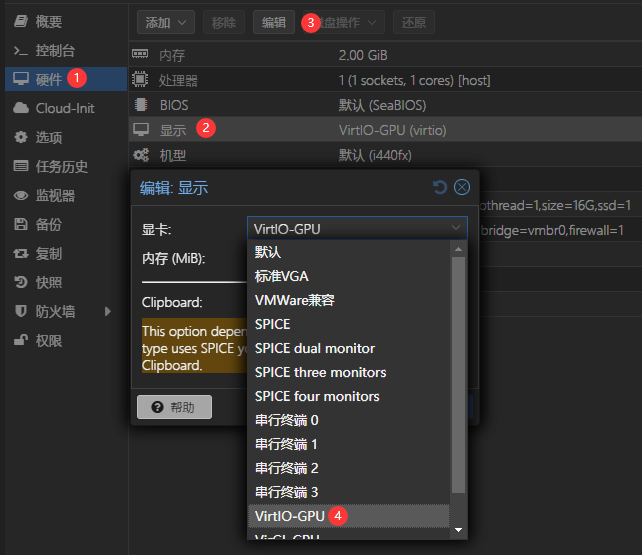 或者VirtIO-GPU(这里我设置为无时无法启动虚拟机)。